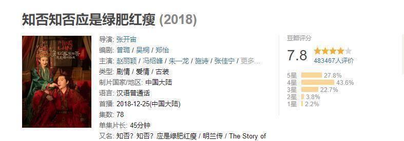 知否现时在豆瓣的评分有7.8分,对于一部国产电视剧来说依然是很好的成绩了,诚然这部剧有78集,然则内部的片断莫得念念让东谈主快进的部分,好的作品是经得起技术的开检会的。