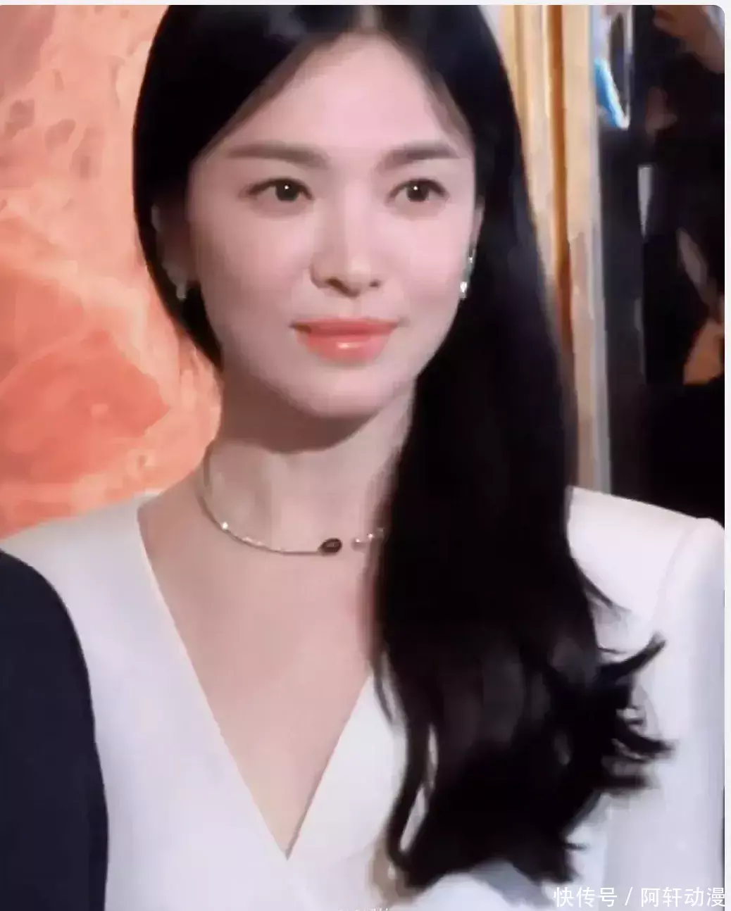 镜头拉近,宋慧乔的脸上有了一定的规矩纹。