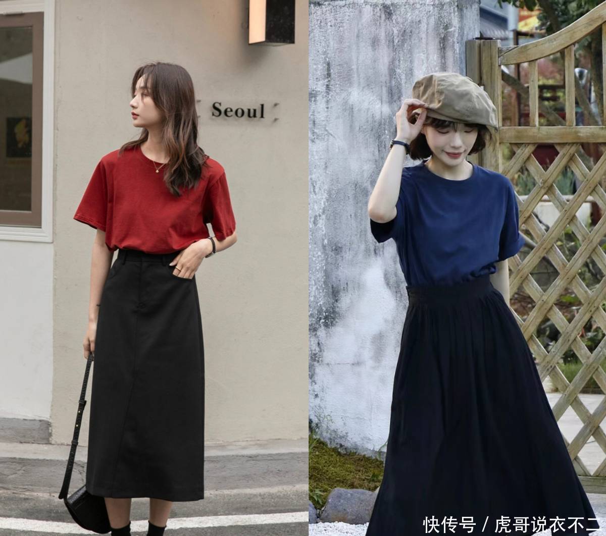 沙巴龙虎斗二、玄色半身裙百搭1、T恤+半身裙