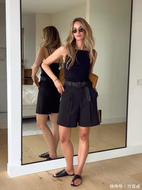 从博主上身成果来看,对身段皆备有益的短裤版型是五分裤,用它搭配露脐吊带大概旧例短款吊带,都能呈现出女性非常的柔顺和坚强,既圣洁又巧妙,既有亲和力又不会是“中央空调”,好意思的有作风、有立场、有品尝,